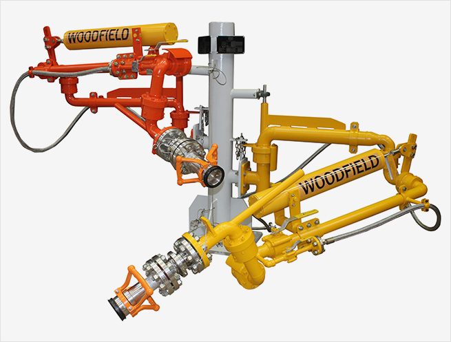 W443-JR Brazos de carga con revestimiento de vapor para productos viscosos que requieren un calentamiento constante. Asfalto, bitúmenes, azufre líquido, etc. En acero al carbono o acero inoxidable con tamaños de 3″ x 4″, 4″ x 6″ y 6″ x 8″. Típicamente con recuperación de vapor, detección del nivel del líquido, operación neumática. Los brazos están completamente aislados. Otros medios de calor como aceite caliente o sistema de calentamiento eléctrico disponible.