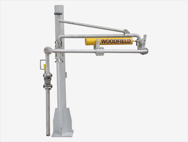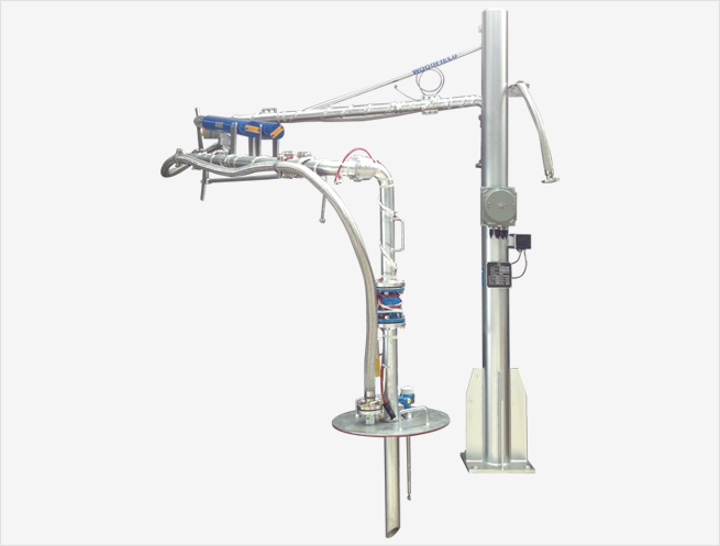 W440-KP Brazo de carga superior de 3” de brazo en acero inoxidable con soporte para cargar camiones cisterna con productos químicos nocivos. Con sistema de balance mediante resorte de compresión, calentamiento eléctrico, recuperación de vapor, detección de líquido de alto nivel, válvula de control y monitorización de puesta a tierra.