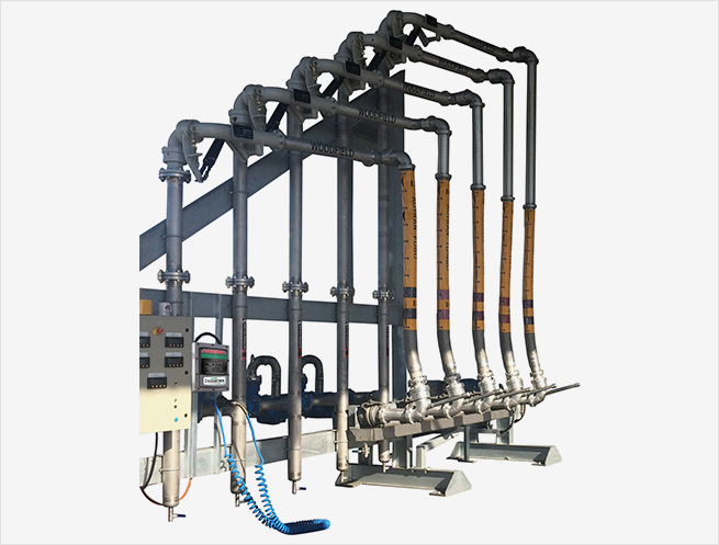 Sistemas completos de medición diseñados por encargo para carga y descarga de camiones y vagones de ferrocarril para sustancias nocivas liquidas y gaseosas. Sistema a prueba de explosión con puesta a tierra y controlador de lotes local conectado al sistema de automatización central si es necesario. Medición de Transferencia en Custodia con control de flujo, detección de presión y temperatura y posibilidad de parada remota / de emergencia.